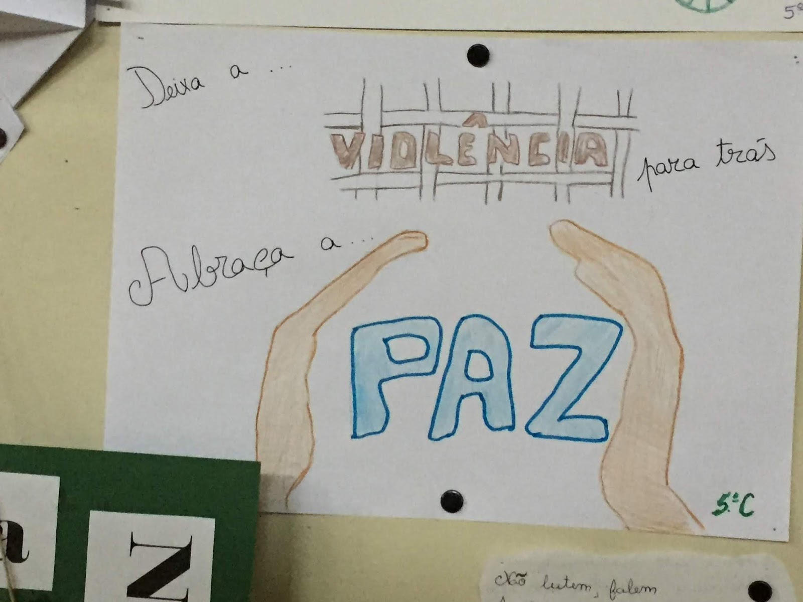 Num mundo onde a violência gratuita vai sendo notícia, onde a paz é interrompida a cada momento, a BE, em articulação com o Departamento de Português, organizou uma exposição de trabalhos alusivos ao tema, realizados nas aulas e em casa, com a ajuda dos encarregados de educação.